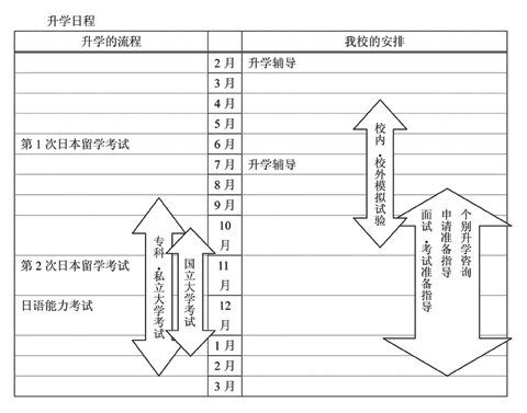 ●日語、日本文化、素質培養・・・1年以上的長期留學不僅是語言能力提高更可通過和日本文化及地域的接觸培養個人素質。另外,會進行大學及大學院的升學指導,可能學到監測未來動向的日語。