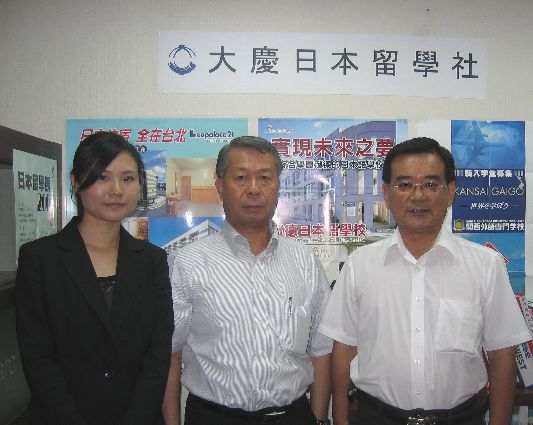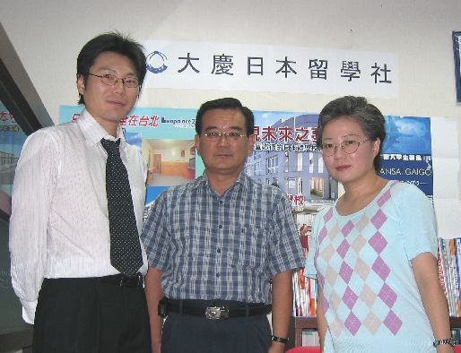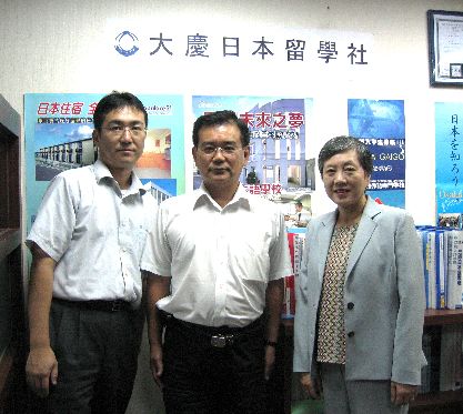 ●2007年7月30日 埼玉國際學園理事長佐藤收先生(左2),台灣擔當吳家惠女士(左1)來訪本留學社.