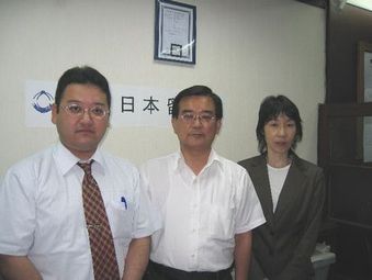 ●2007年12月15日 東京國際日本語學院事務課長島野敏充先生(左), 西口英典先生(右)來訪本留學社.