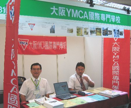 ●2007年7月29日 本留學社代表在「日本留學展2007」會場,擔任大阪YMCA國際專門學校攤位說明員.右邊是學校職員川上良太先生.