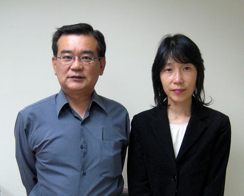 ●2007年9月14日 神戶東洋日本語學院教務主任三宅ひとみ女士(右),專任講師花村博司老師(左)來訪本劉學社.